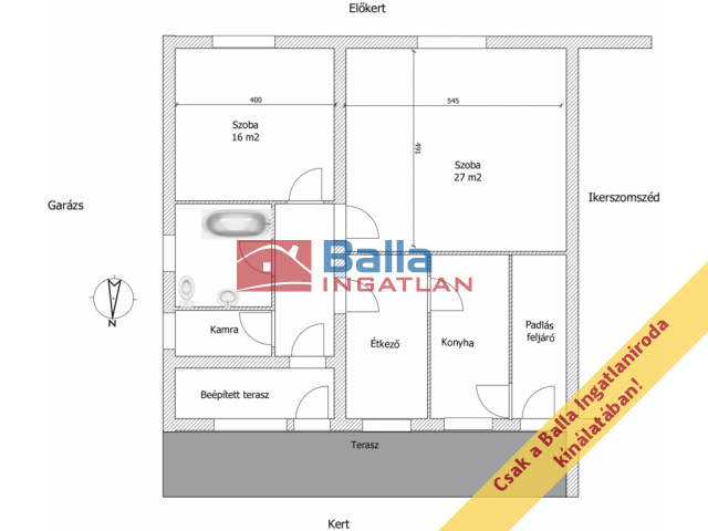 Egyéb tulajdonságok: azonnal költözhető, terasz (12 m²), kamra, külön étkező, garázs