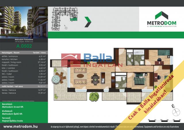 In Újpest (District IV), in the "A" tower of the Metrodom residential park, we offer a 4-room apartment with a panoramic balcony on the 5th floor.