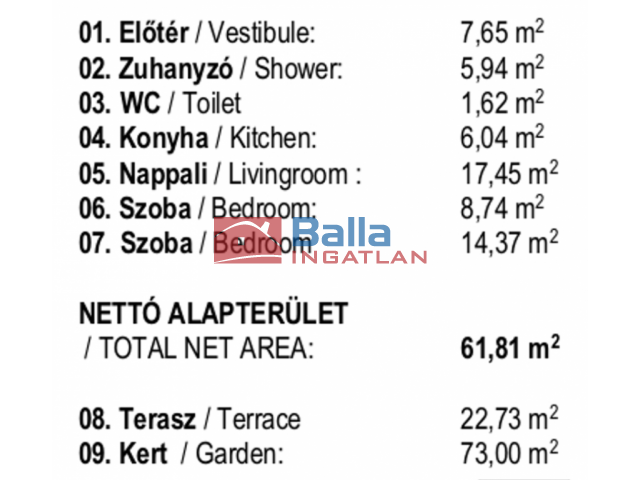 73 m² terület 3 szoba