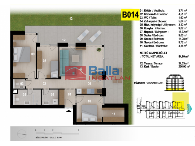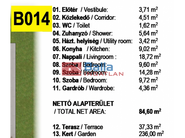 100 m² terület 4 szoba