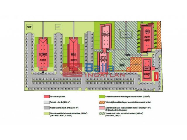 Környezet: Közvetlen vízparti ingatlan. A telken található két újépítésű társasház lakói kizárólagos kerthasználatot kapnak a helyszínrajzon megjelölt területre, ahol a több generációs családok kikapcsolódása érdekében, a beruházás keretein belül gyermekjátszóteret és kültéri medencéket biztosítunk ezen két társasház tulajdonosai számára. Az ingatlan előtt húzódó több mint 3 km hosszú szabadstrand, gondozott zöldterületekkel, parti sétányokkal, sportolási lehetőséget kínáló kölcsönző helyekkel, valamint igényesen kialakított büfékkel szolgálja ki az itt nyaralók igényeit. A lakópark területére a biztonság érdekében egyedi azonosítás után lehet majd csak belépni.