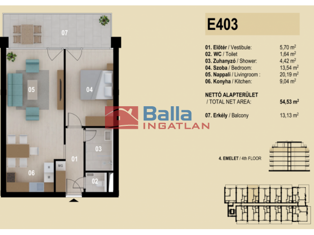 54 m² terület 2 szoba
