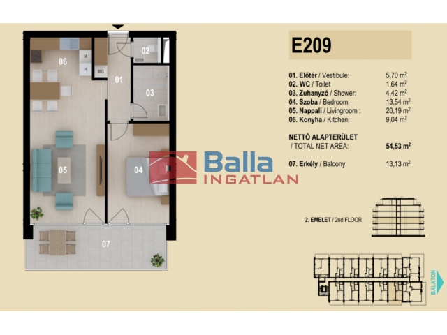 54 m² terület 2 szoba