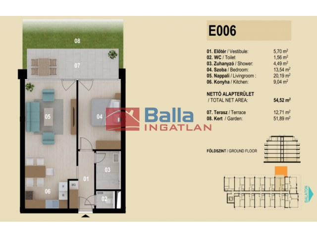 54 m² terület 2 szoba