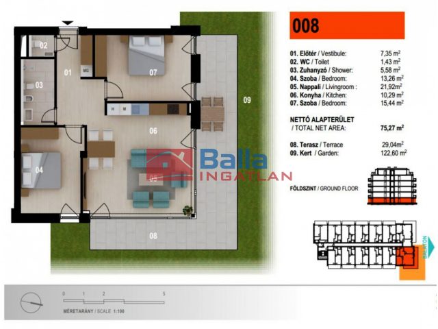 Extrák: 141 m2 saját kertkapcsolat.
