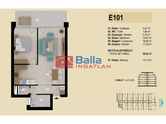 Elhelyezkedés: 8600, Siófok, Ezüstpart, 1. emeleti